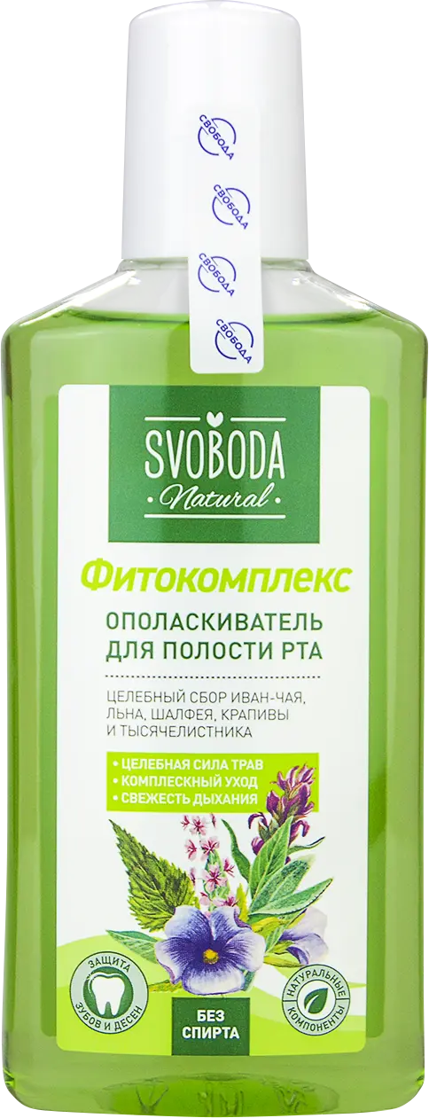 Ополаскиватель для полости рта SVOBODA ФИТО-КОМПЛЕКС специально разработан для ухода за полостью рта как дополнительное средство, позволяющее обеспечить грамотный уход и качественный результат.