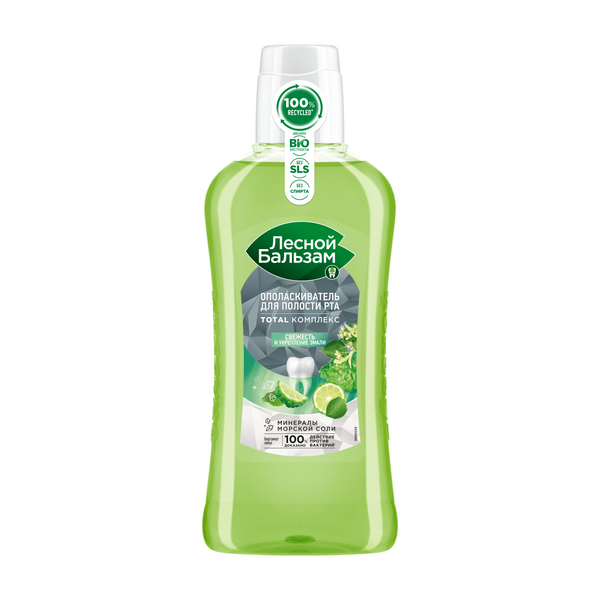 : Ополаскиватель для рта Лесной Бальзам Бергамот и Липа — это эффективное средство для гигиены ротовой полости, содержит эмали зубов и устраняет неприятный запах. Ополаскиватель для полости рта борется с бактериями 24 часа в сутки, 7 дней в неделю*. Средство – полоскатель для рта создает приятное ощущение чистоты и свежести. Ополаскиватель для рта содержит обогащенный натуральными ингредиентами состав, включающий: минералы морские соли, сок лимона, экстракты зелёных чаев, содержание глицерофосфата. Ополаскиватель для полости рта Бергамот и липа с антибактериальным эффектом обеспечивают защиту от неприятного запаха изо рта, используя зубную эмаль. Освежающий ополаскиватель для рта Лесной Бальзам оказывает на 100% доказанное антибактериальное действие*. Лесной Бальзам ополаскиватель 400 мл не имеет в составе спирта и SLS. Ополаскиватель для полости рта поддерживает здоровье ротовой полости за счет замедления роста бактериального налета, освежает дыхание. Жидкость для полоскания рта Бергамот и липа – это средство, предпочитаемое стоматологами. Тщательно полоскайте рот в течение 30 секунд, не реже двух раз в день.