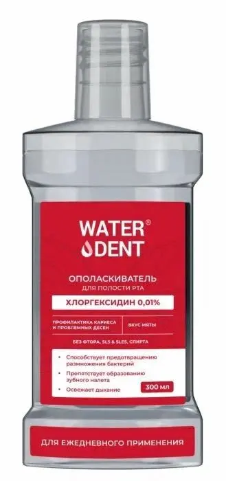 WATERDENT ополаскиватель для полости рта хлоргексидин 0,01% со вкусом мяты 300мл