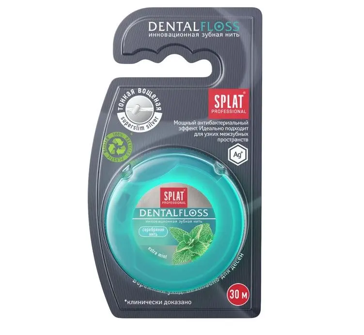 Splat professional dentalfoss зубная нить супертонкая мята волокна серебра 30м кс