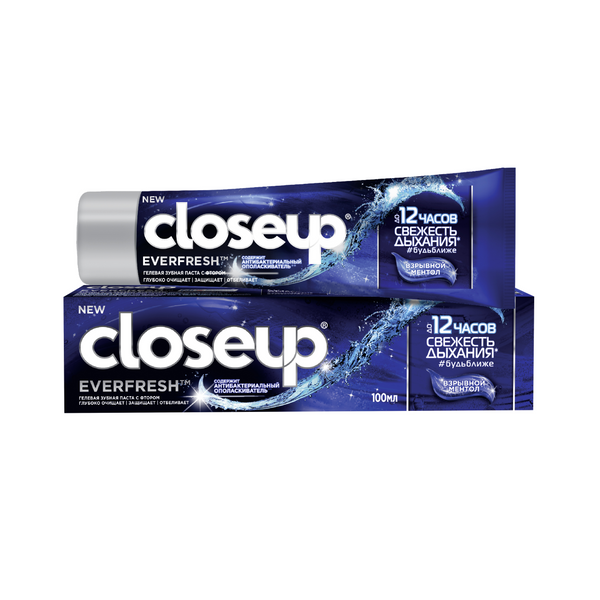 Приготовься к экстремально быстрому сближению! С гелевой зубной пастой CloseUp Взрывной Ментол ты получишь +100500 к харизме и уверенности в себе. А еще качественный уход за всей полостью рта! Ошеломительный, морозный вкус ментола заряжает энергией, чтобы начинать (и заканчивать) каждый день на нужной ноте! Гелевая зубная паста CloseUp заряжена силой антибактериального ополаскивателя*, который устраняет до 99% вредных бактерий**. Что это тебе дает? Взгляни! Нереальная свежесть дыхания до 12 часов***, чтобы чувствовать себя уверенно в моменты близости и не только! Снижение риска кариеса при регулярном применении. Твой стоматолог оценит твои усилия. И не только он! Кроме того, фреш-паста CloseUp Взрывной ментол содержит частицы диоксида кремния (Silica). Их округлая форма позволяет эффективно удалить налет по всей поверхности зубов, не травмируя эмаль. А фтор в составе зубной пасты способствует восстановлению эмали. За твою белоснежную улыбку отвечают специальные компоненты Micro Shine Crystals, которые способствуют отбеливанию эмали**** – и перед твоей притягательной сияющей улыбкой никто не устоит! Ешь, смейся, делай селфи и занимайся тем, что любишь, пока твоя зубная паста с ментолом отвечает за твою белоснежную улыбку и свежее дыхание!