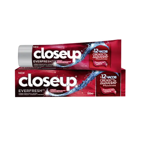Проверь, насколько ярким может быть каждый новый день в твоей жизни! Попробуй гелевую зубную пасту CloseUp Жаркая мята и посмотри, что случится. Твоя зубная паста вряд ли обеспечит тебе миллион долларов, повышение в карьере или свидание мечты. Но ей по силам зарядить тебя уверенностью и обжигающей свежестью! Эта фреш-паста прокачана силой антибактериального ополаскивателя* и устраняет до 99% вредных бактерий**. Наслаждайся свежим дыханием дольше: CloseUp EVERFRESH подарит тебе до 12 часов без неприятного запаха изо рта!*** Для тщательного и бережного очищения в состав пасты добавлены частицы диоксида кремния (Silica). Их особенность – округлая форма, которая позволяет удалить зубной налёт, не травмируя эмаль. Зубная паста с фтором способна не только защищать эмаль от разрушения, но и восстанавливать поврежденные участки. А специальные компоненты Micro Shine Crystals способствуют отбеливанию эмали****. Твоя улыбка – оружие, перед которым не устоит ни одна крепость! Начинай и заканчивай свой день с правильными ритуалами. Гелевая текстура пасты обеспечивает комфорт в процессе чистки, а ярко-алый цвет с перламутровыми частичками и яркий вкус мяты с терпкими нотами пробуждают новые идеи. Пожалуй, сейчас самое время их воплотить! Мы мечтаем любить и быть рядом с теми, кто заставляет наше сердце биться чаще.