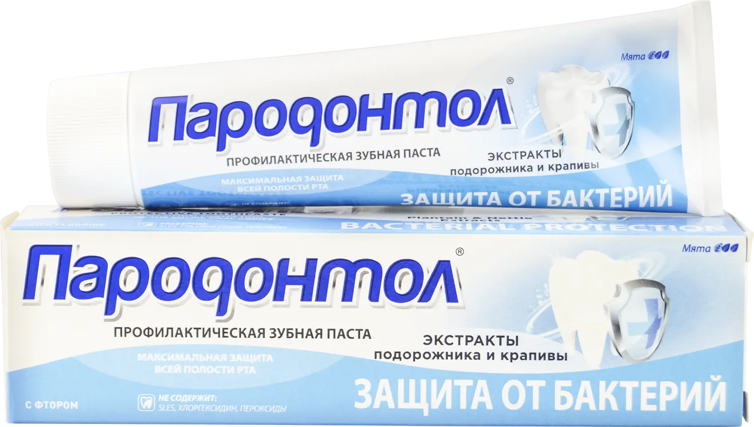 Активный фтор препятствует образованию кариеса, укрепляет зубную эмаль, обеспечивает защиту от сахарных кислот .