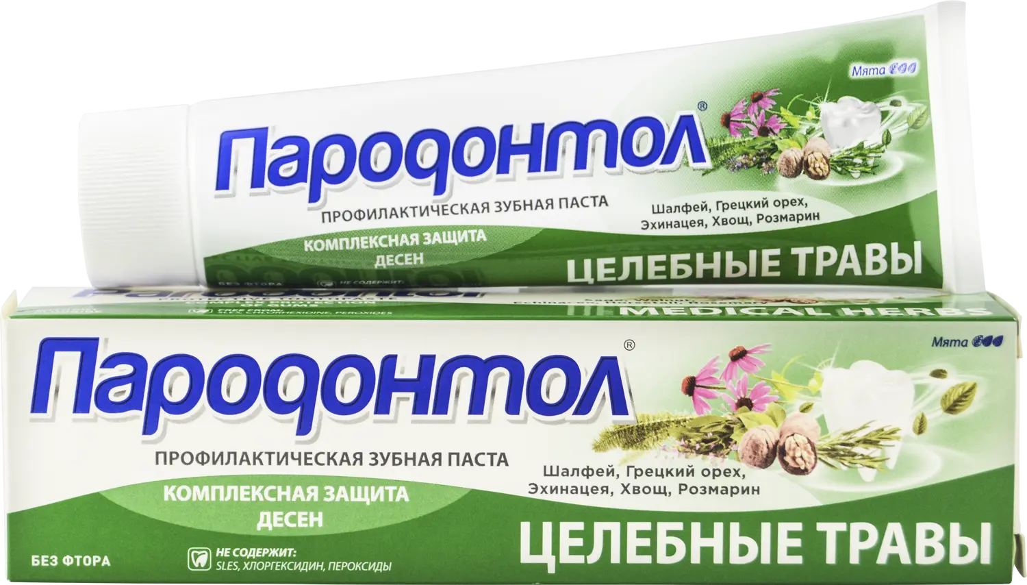 Активный комплекс натуральных экстрактов из целебных растений с высоким содержанием действующих веществ способствует профилактике проблем десен, тщательно удаляет зубной налет и освежает дыхание.