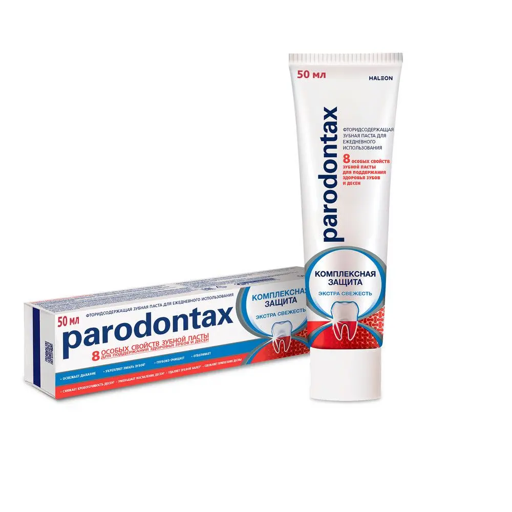 Зубная паста Parodontax Комплексная Защита обладает 8 особыми свойствами для поддержания здоровья десен и укрепления зубов: