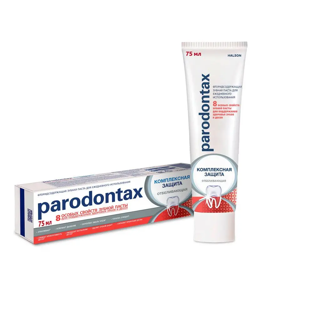 parodontax Комплексная Защита Отбеливающая — зубная паста для ежедневной заботы о здоровье полости рта.