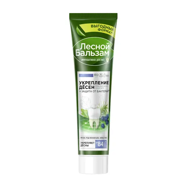 Профилактическая зубная паста Лесной бальзам обладает иммуноактивным действием и заботится о здоровье десен.