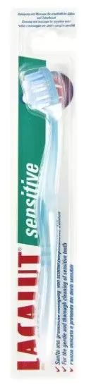 Зубная щетка Lacalut sensitive предназначена для чистки чувствительных зубов. Она имеет очень мягкие, закругленные нейлоновые щетинки и волнообразный профиль. За счет клиновидной головки щетка обеспечивает деликатное и качественное удаление налета со всей поверхности эмали, включая пришеечную зону и труднодоступные для чистки области.