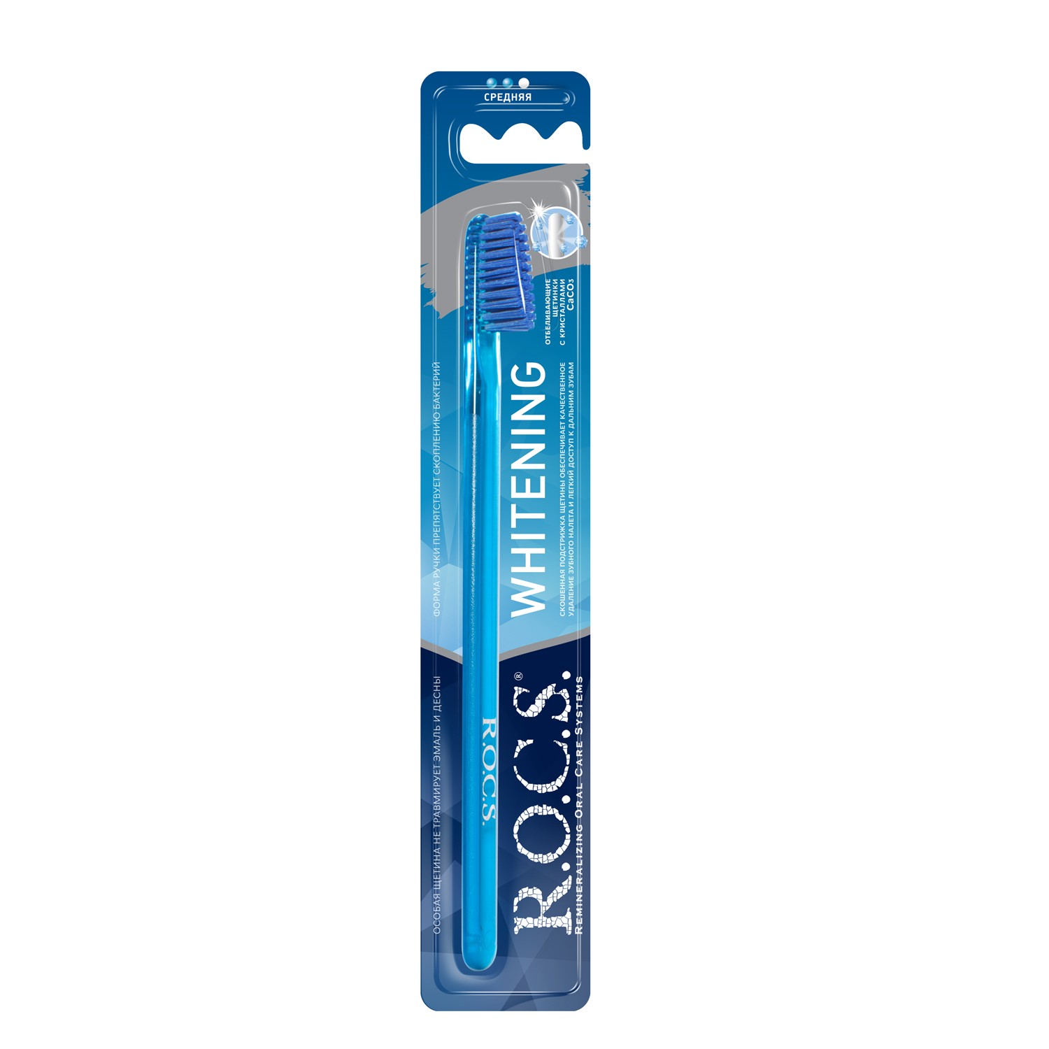 Новая зубная щетка R.O.C.S. «Отбеливающая» (средняя) разработана специально для восстановления и поддержания естественной красоты улыбки. Щетинки РОКС «Отбеливающая» имеют специальное покрытие с кристаллами карбоната кальция, который значительно повышает очищающую способность щетки, не позволяя окрашивающему налету задерживаться на эмали зубов. Цвет в ассортименте