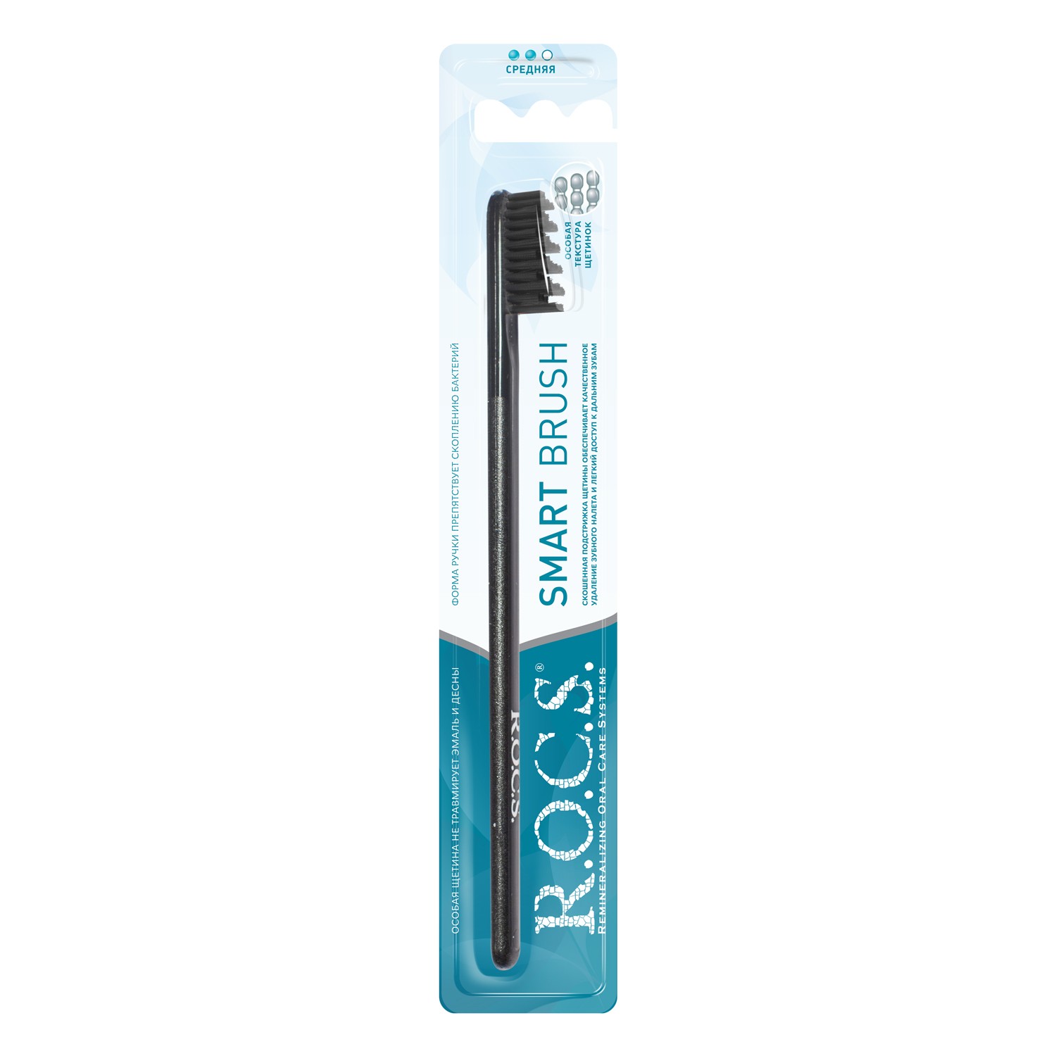 Необычная зубная щетка R.O.C.S. «Модельная», средняя имеет уникальную форму головки с разноуровневой подстрижкой. Она эффективно очищает зубы и труднодоступные участки зубного ряда; не травмирует десны и другие мягкие ткани ротовой полости.
