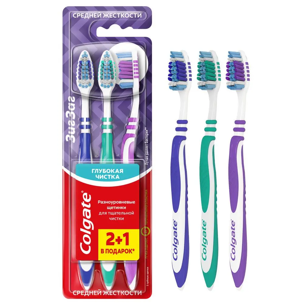 Colgate зубная щетка зиг заг многофункциональная средней жесткости промоупаковка 2+1