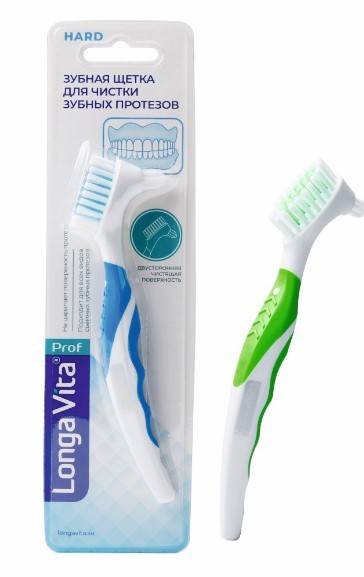 Лонга Вита зубная щетка для протезов двусторонняя с жесткой щетиной nylon tynex
