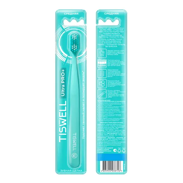 Tiswell зубная щётка средней жесткости для взрослых бирюзовая ultrapro+ 1 шт
