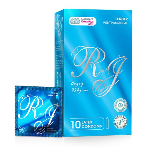 Презервативы из натурального латекса R and J Tender. Нежные. Ультрамягкие. Очень обильная смазка +++. Диаметр: 52+-2 mm; Длина: 180+-10 mm; Толщина: 0.06+-0.01 mm