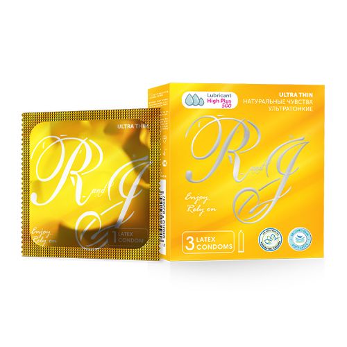 Презервативы из натурального латекса R and J ULTRA THIN (Натуральные Чувства). Ультратонкие 3 штук в упаковке. Классические. Смазка 500 mg. При производстве презервативов "R and J" используется технология "Thin Technology". Эта технология позволяет получать чувственные ощущения во время секса. Используется более мягкий латекс. При надевании нужно, аккуратно придерживая уплотняющее кольцо, мягко и не спеша, аккуратненько надеть презерватив.