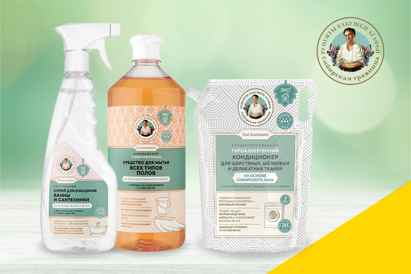 В данной серии представлен широкий ассортимент бытовой химии: средство для мытья полов, эко гель для мытья туалета, эко гель для мытья посуды, чистящий крем для всех видов поверхностей, гель для очистки сантехники и кафеля, гель для удаления стойких и жирных загрязнений, спрей для стекол и зеркал, гели кондиционеры для стирки.