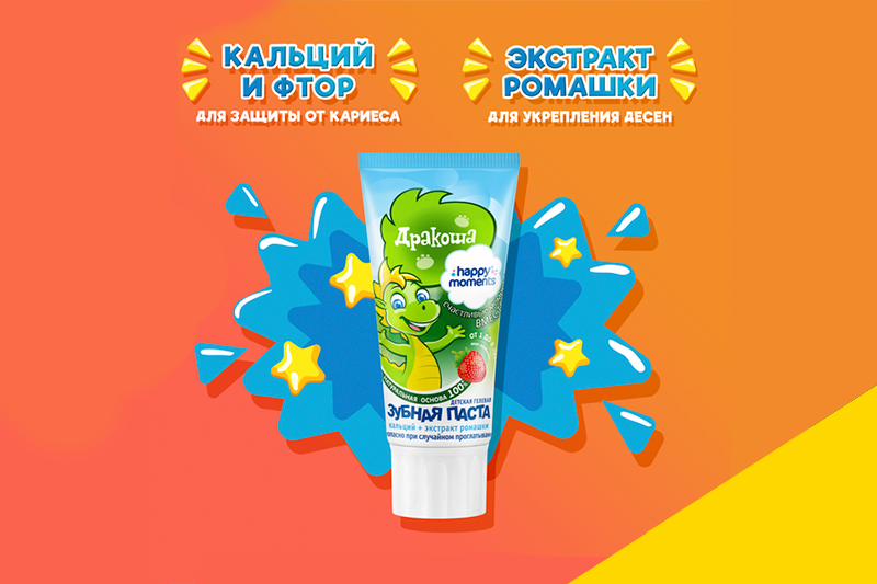 Любимые вкусы и яркие цвета сделают привычку чистить зубы ярким увлечением, а мамы могут спокойно доверить уход за детскими зубами Дракоше - ведь эта паста безопасна при случайном проглатывании!