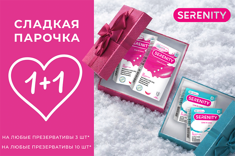 Спешим сообщить вам, что на наш эксклюзивный бренд презервативов Serenity действует акция 1+1*