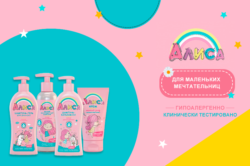 Детская косметика «Алиса» включает в себя следующие продукты: