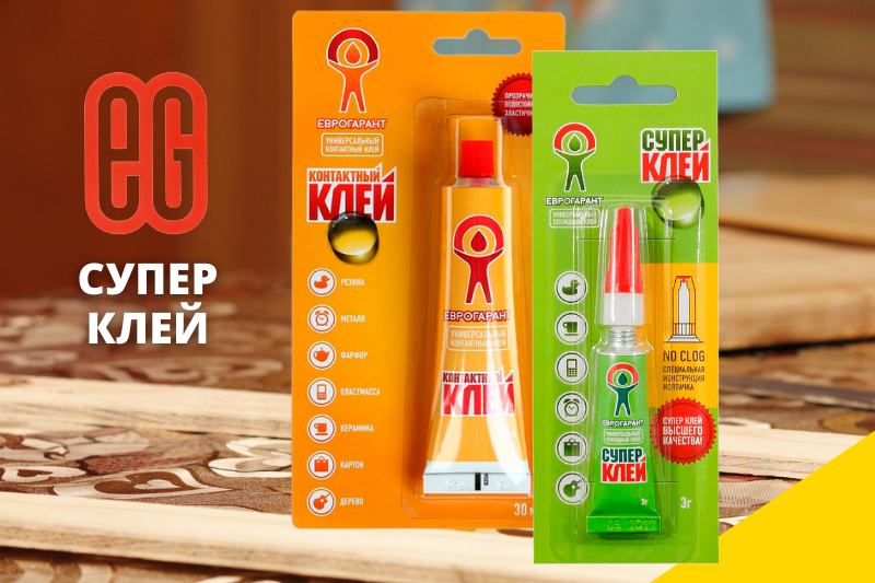 Под брендом Еврогарант выпускается полный ассортимент клеев: суперклей, суперклей-гель, контактный клей и антиклей. Клей Еврогарант обладает всеми соответствующими сертификатами, также эти изделия полностью соответствуют международным и российским государственным стандартам.
