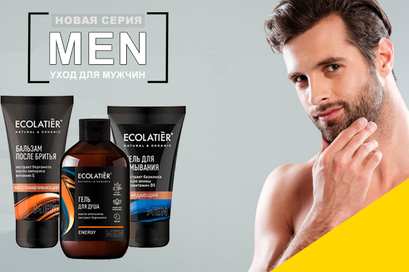 В линейку ECOLATIER MEN входят основные уходовые средства: шампуни для волос; гели для душа; средства для бритья; уход за лицом и телом.