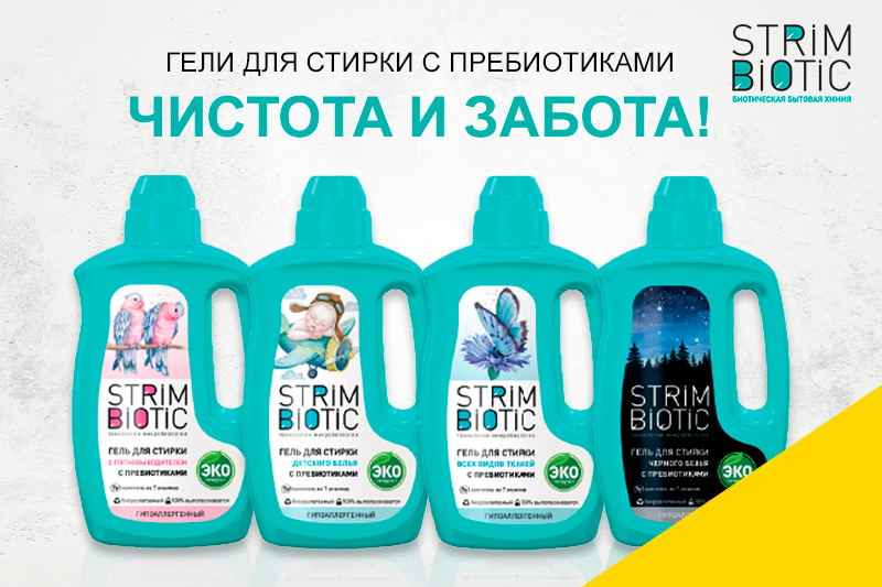 Уникальный средства для стирки STRIM BIOTIC с пребиотиками подарят долгую свежесть после стирки, обеспечат гипоаллергенность, делают ткань идеальной для людей с чувствительной кожей.