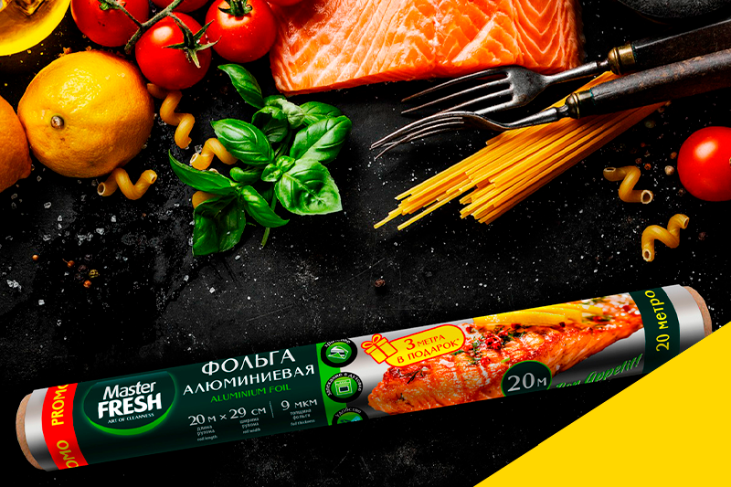 Фольга Master FRESH имеет высокую термостойкость – до 230 градусов, что позволяет использовать ее также для приготовления и запекания пищи. Изготовлена из безвредного материала для человека и окружающей среды.