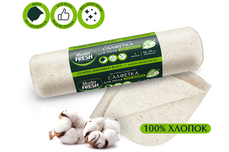 Салфетка для уборки пола Master FRESH изготовлена из 100% высококачественного хлопка.