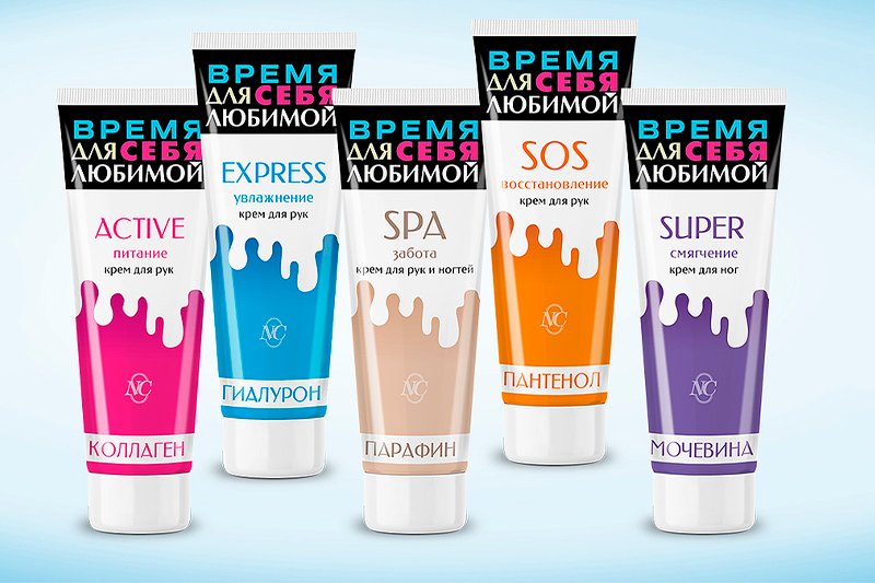 Обновленная серия кремов для рук и ног обладает инновационными и функциональными активными ингредиентами: коллаген, гиалуроновая кислота, парафин, мочевина, пантенол с добавлением натуральных масел. Данные крема имеют: